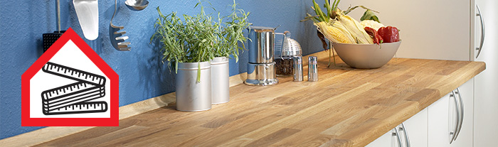 Við sögum borðplötur sem keyptar eru í BAUHAUS til eftir máli - allt eftir þínum óskum. Borðplöturnar setjum við einnig saman í 45 eða 90 gráðum.